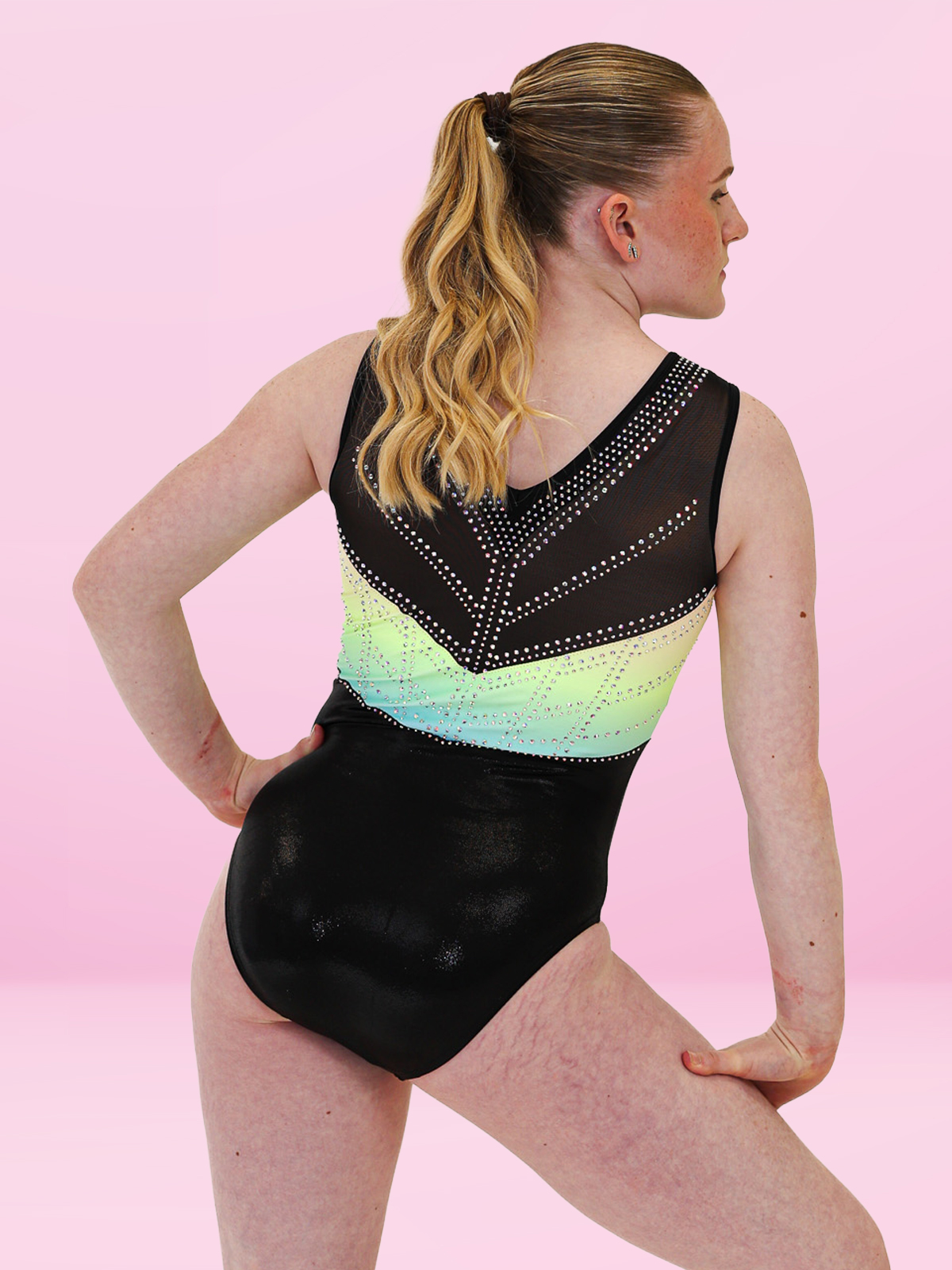Bold meets beautiful in the Aurora leotard. With a pastel rainbow top and vibrant neon appliqués, it’s finished with a shimmering mystique bottom. Love the sparkle pattern? It’s the same as the Titanium leotard, just with a playful, colourful palette.