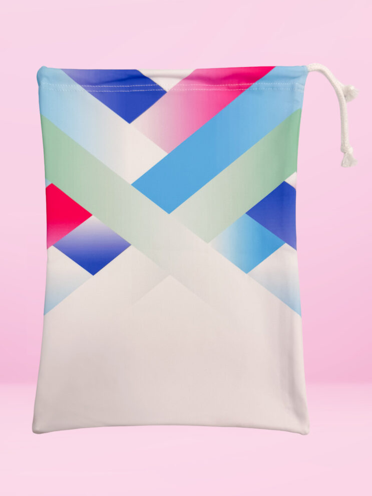Complete your training look with the Chalet Pastel Handguard Tote Bag in Lycra – the perfect companion to your Chalet Pastel leotard. Featuring the same dreamy geometric design in soft shades of white, pink, green, lilac, and blue, this tote adds a splash of pastel perfection to your gym gear. Crafted from durable, easy-clean materials, it’s ideal for storing handguards, tape, and other small essentials. Finished with a tie handle closure, this stylish tote combines practicality with elegance.