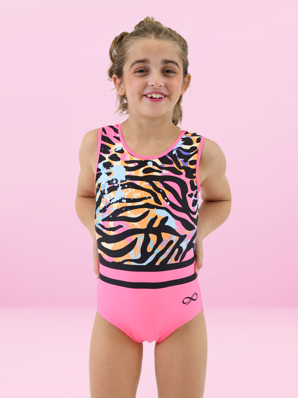 Unleash your wild side with the Party Animal Leotard! Bursting with colour, this fully sublimated tank features a bold mix of rainbow animal, zebra, and tiger prints, paired with a neon pink lower bodice. Made from soft, comfy lycra, it’s perfect for training – bright, fun, and affordable!