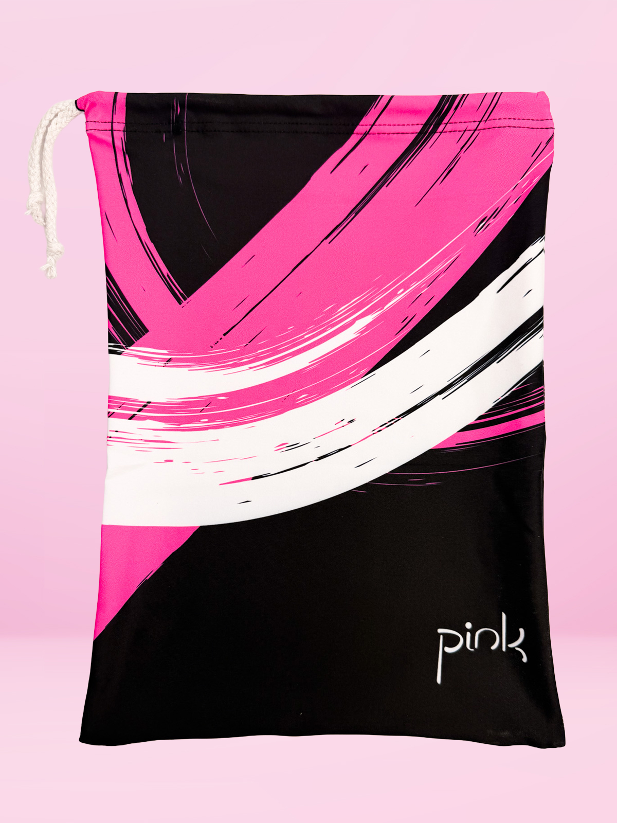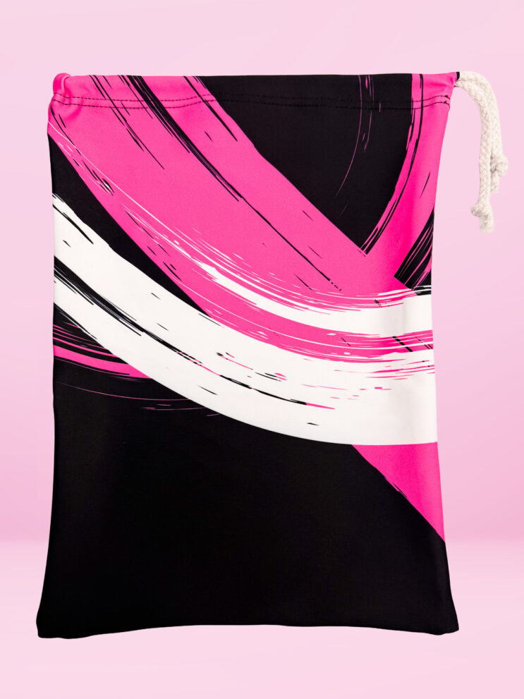 Fierce, sleek, and functional—the Swoosh Black Handguard Tote Bag is the perfect sidekick for every training session. Designed to match the bold style of the Swoosh Black leotard, this tote features a black base with dynamic pink and white swoosh accents. Compact yet spacious enough for handguards, tape, and other essentials, it’s made from durable, wipe-clean materials. Whether you’re headed to practice or competition, this tote keeps your gear organised and your look on point.